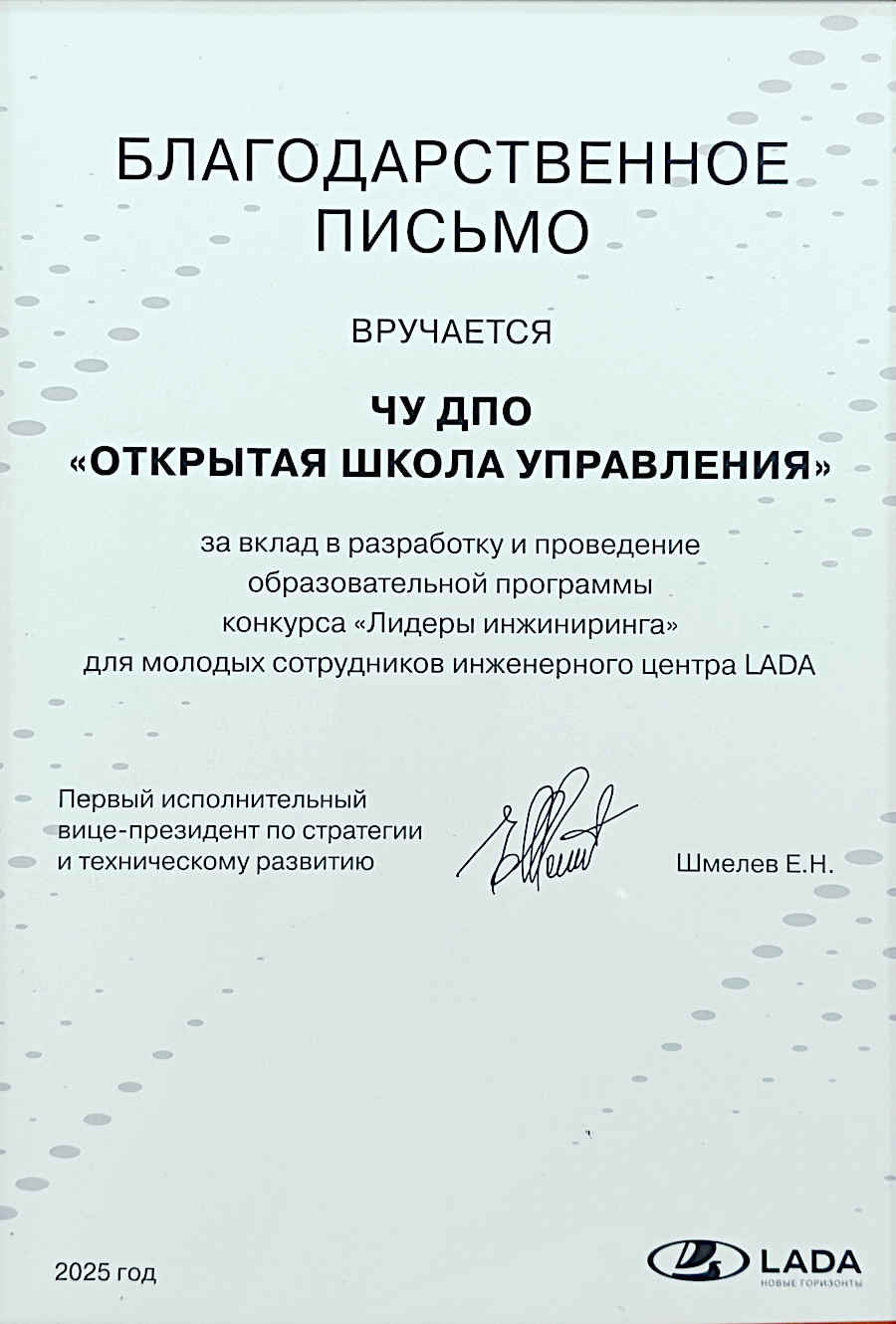 Участие в образовательной программе конкурса для молодых сотрудников инженерного центра LADA.