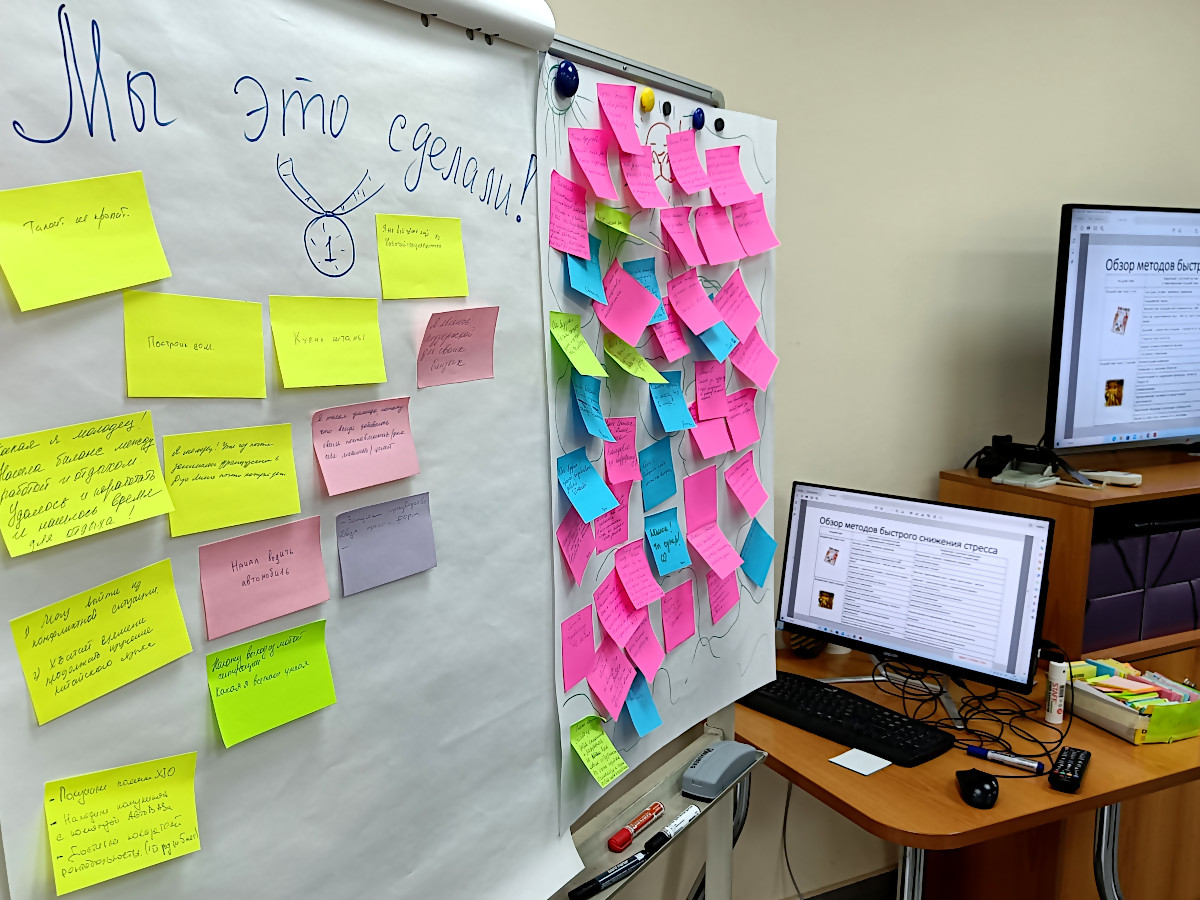 )* жизнь человека редко проходит без эмоционального напряжения и стрессовых ситуаций. Кризис влияет на каждого. Растут тревожность, беспокойство, а неизвестность пугает. Во времена SHIVA/TACI-мира важно следить за здоровьем команды и не допускать, чтобы подобная нагрузка стала чрезмерной. Для этого участники тренинга попытались глубже разобраться с природой стресса, познакомились с методами быстрого снижения стресса и стратегиями его профилактики – тайм-менеджмент, расстановка приоритетов, делегирование.