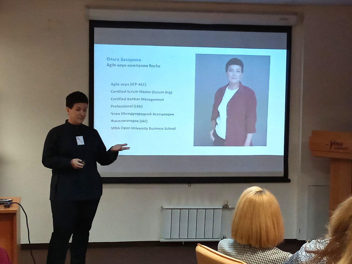 Содержательную часть встречи провела Ольга Захарова - выпускница программы MBA The Open University, а в настоящее время - agile-коуч компании Roche.
