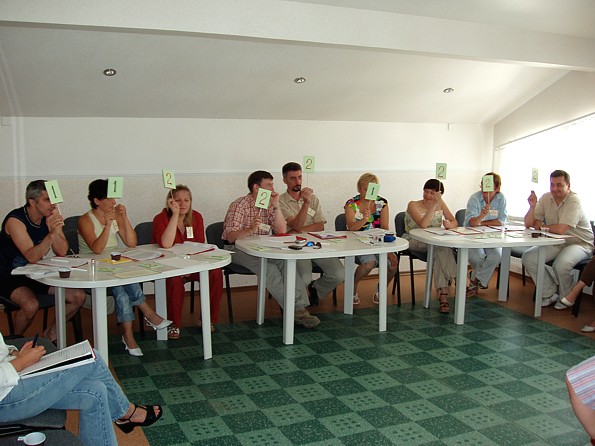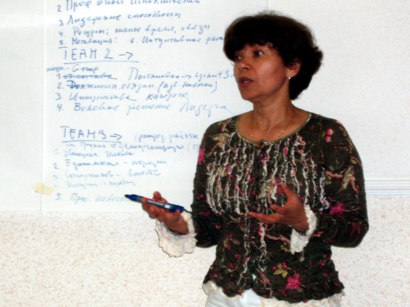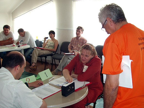 Первая часть Посиделок была посвящена отработке индивидуальных управленческих навыков - ведение переговоров, достижение своих целей при разрешении сложных конфликтных ситуаций. Вопрос "кто кого?" может возникать в различных ситуациях: между партнерами по бизнесу, между начальником и подчиненным, между тьютором и студентом, между друзьями или в семье. И от того, как этот вопрос решится, зависит не только судьба конкретной обсуждаемой проблемы, но и многих других проблем, связанных с теми отношениями, которые после установятся между его участниками. Под руководством В.Видро участники попытались освоить некоторые полезные навыки личностного взаимодействия, которые важно иметь в своем арсенале. Ведущий также рассказал участникам о технологии управленческих поединков В.К.Тарасова, участником и победителем которых был он сам.