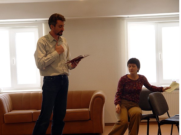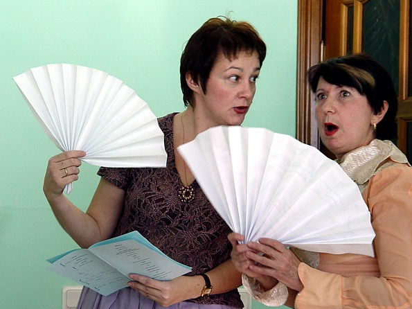 А после тренинга по актерскому мастерству действующие лица не побоялись "замахнуться" на классика ("Горе от ума").