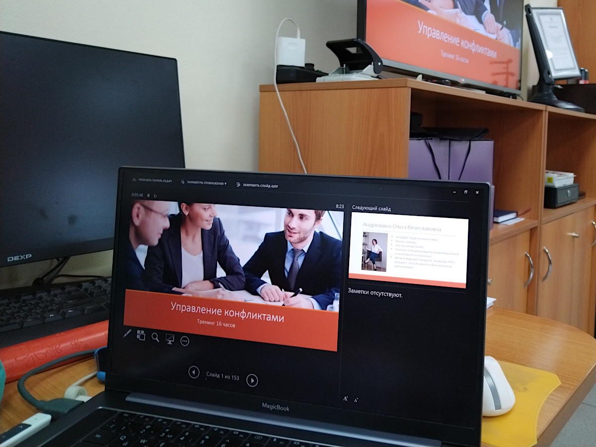 Состоялся двухдневный корпоративный тренинг "Управление конфликтами". Тренинг позволил участникам лучше понять природу конфликта и приобрести знания и умения помогающие успешно разрешать спорные ситуации с пользой для бизнеса, защищать свои убеждения и сохранять эффективные рабочие отношения.