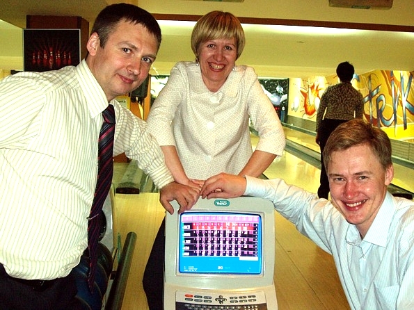 После вручения желающие смогли поиграть в боулинг и пообщаться. Три команды приняли участие в дистанционном турнире по боулингу "БОУ-ЛИНК", который проводится Ассоциацией студентов и выпускников МИМ ЛИНК. Лучший результат продемонстрировала команда "Аррива": Дмитрий Ботаев, Дмитрий Алюсов, Дмитрий Кузнецов, Сергей Рыбкин, Евгений Выскубов (1064).