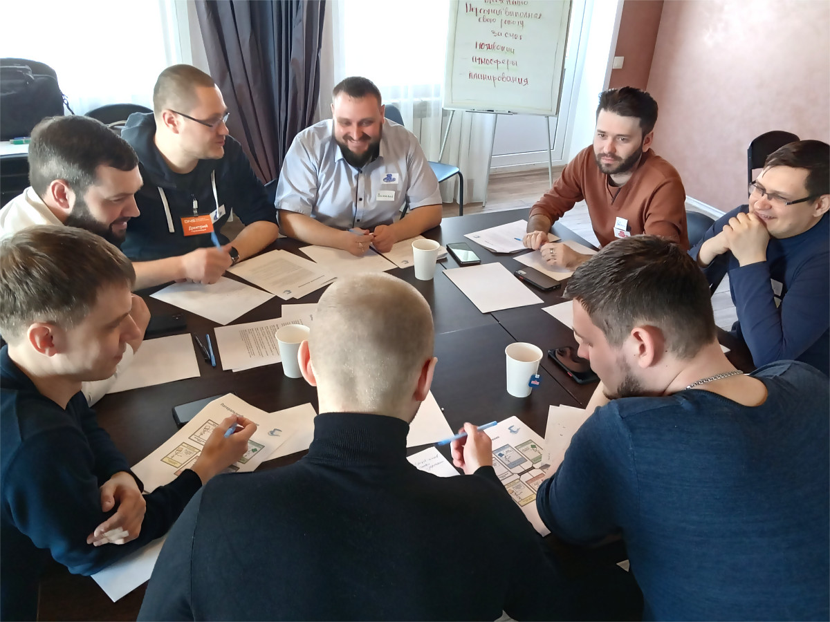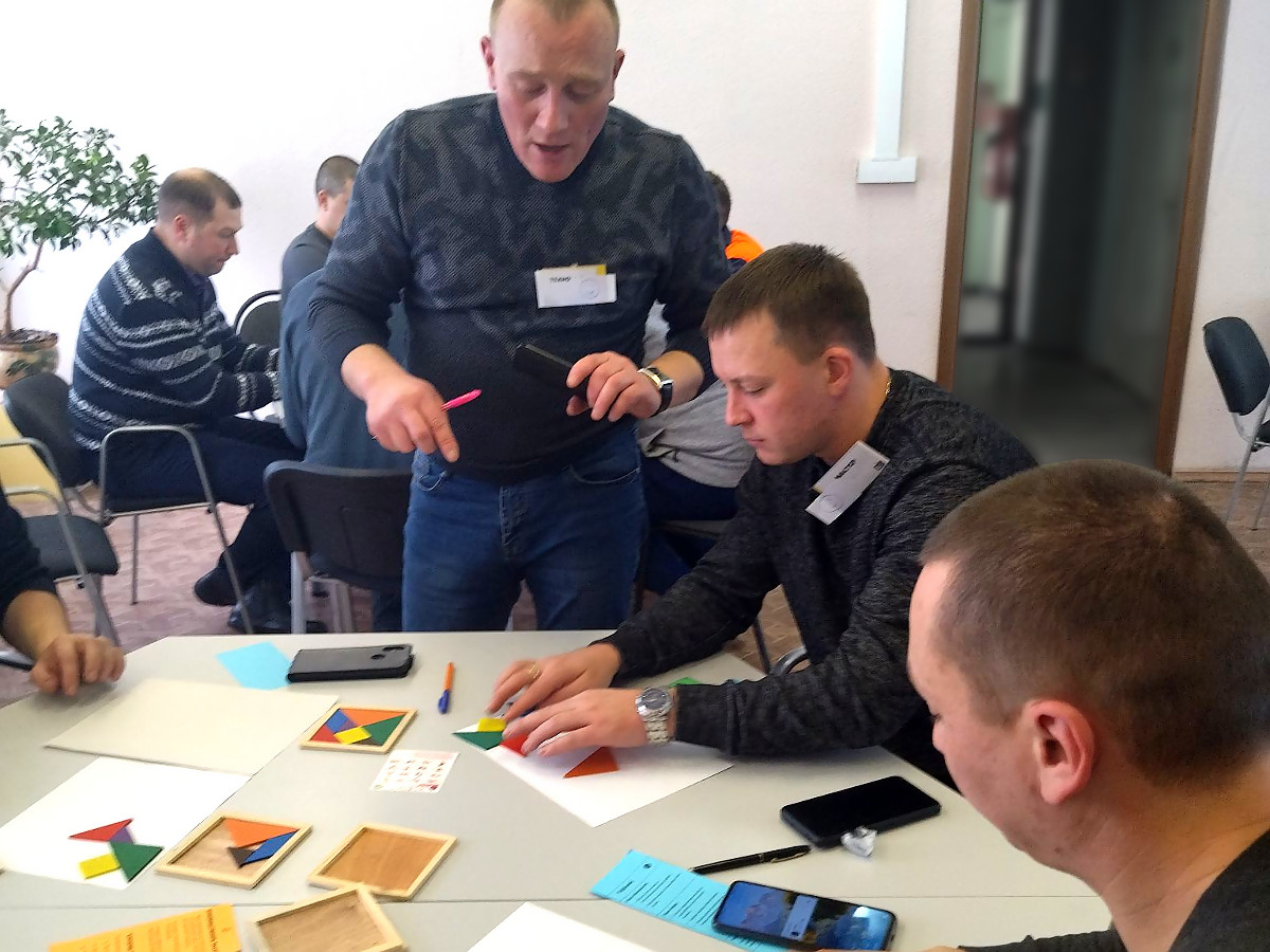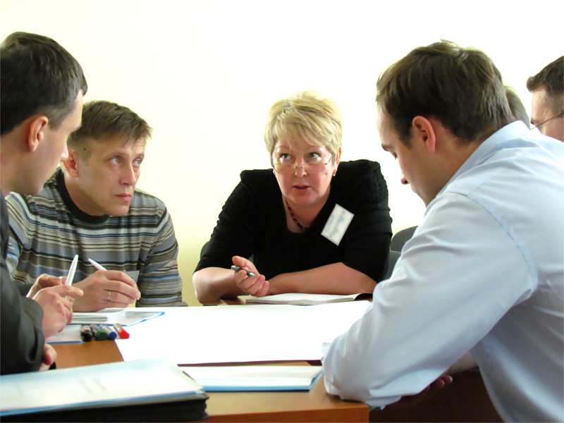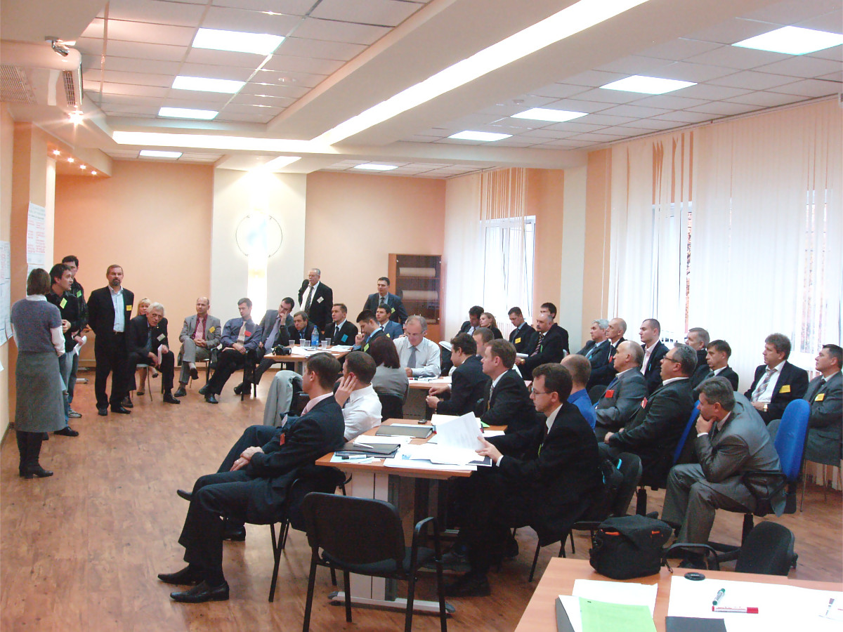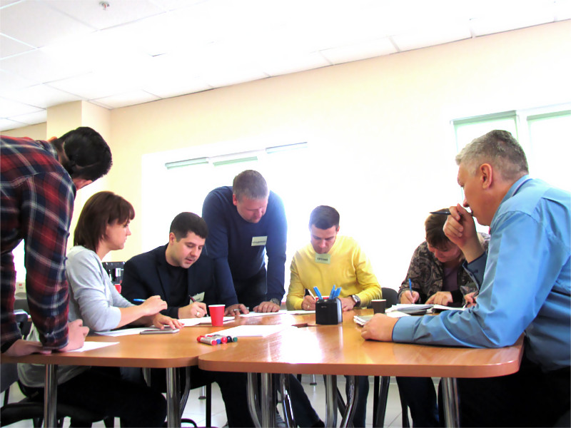 - Выездной двухдневный семинар-тренинг "в режиме погружения". Основные цели: Формирование у членов рабочих групп навыков использования альтернативных подходов для коллективного решения сложных задач. Налаживание эффективного межфункционального взаимодействия рабочих групп.