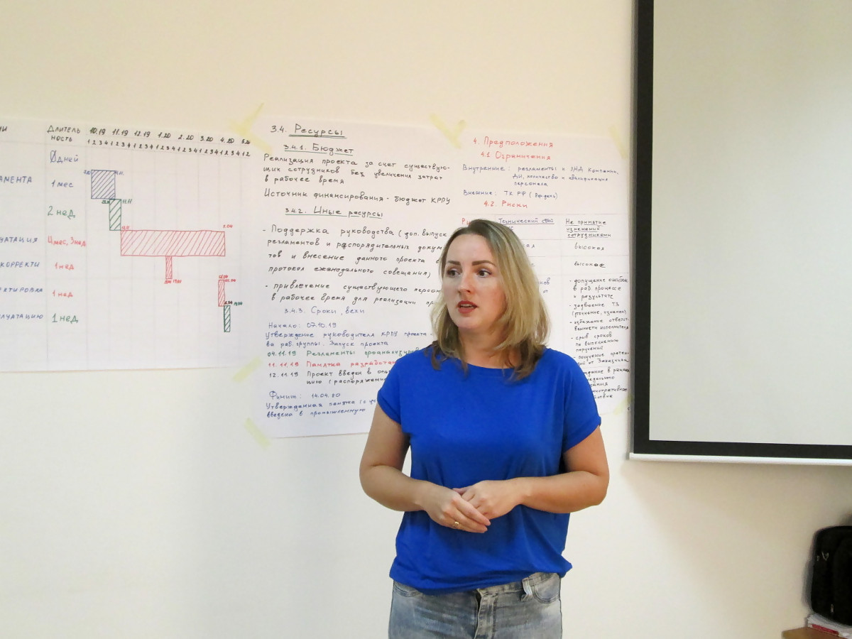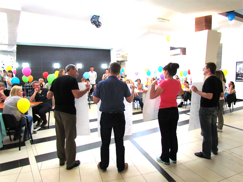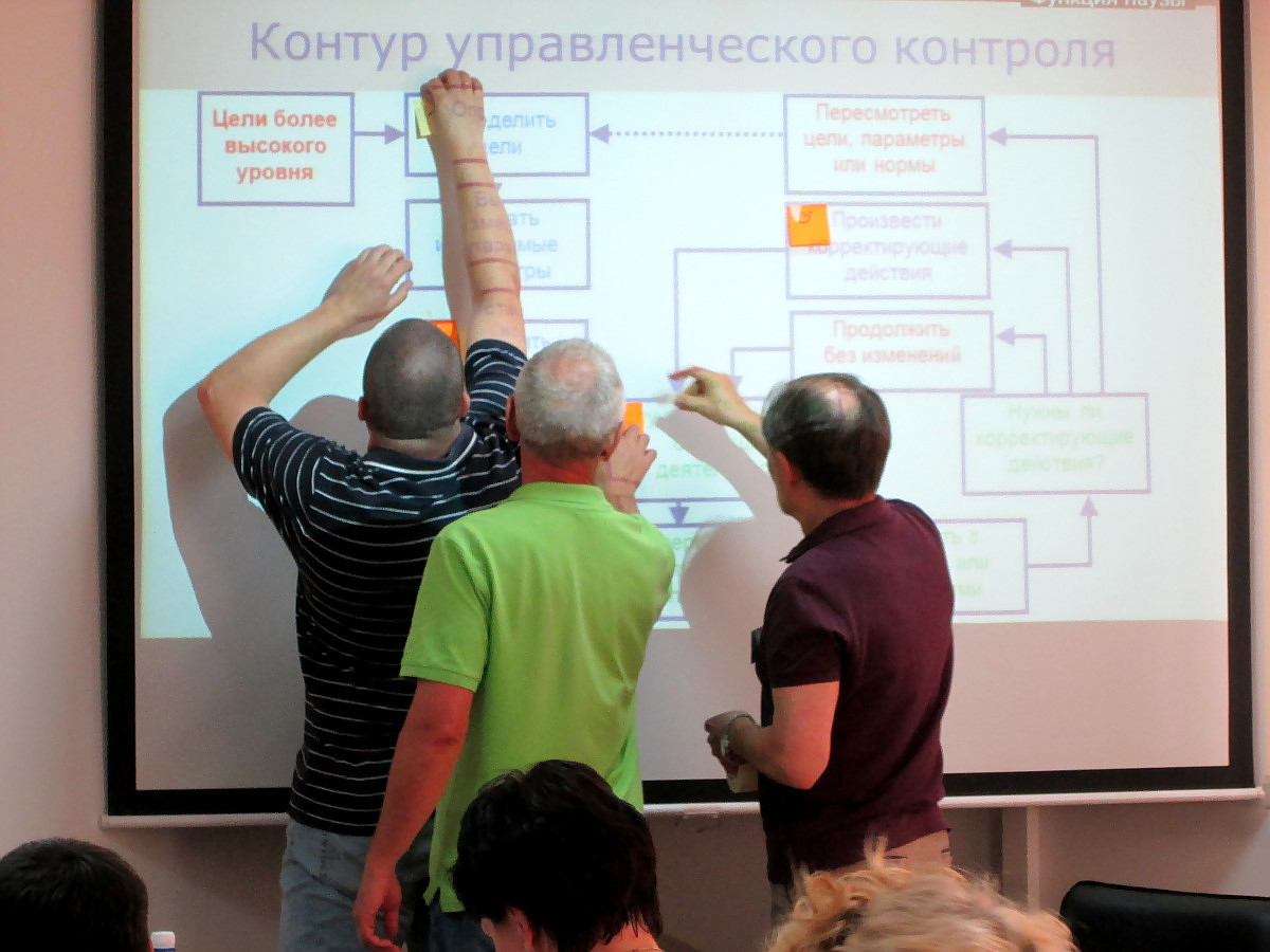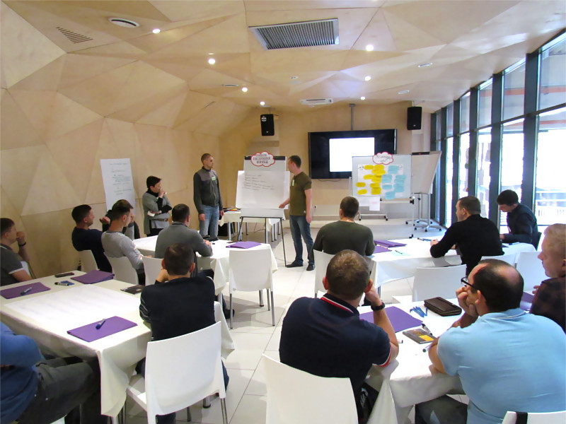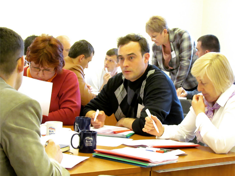 - Выездной двухдневный семинар-тренинг "в режиме погружения". Основные цели: Формирование у членов рабочих групп навыков использования альтернативных подходов для коллективного решения сложных задач. Налаживание эффективного межфункционального взаимодействия рабочих групп.