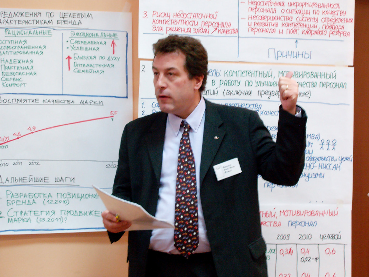 - Выездной двухдневный семинар-тренинг с элементами модерируемой сессии. Основные блоки: Работа в команде. Использование метода системного анализа для выявления и структурирования проблем. Принятие решений.
