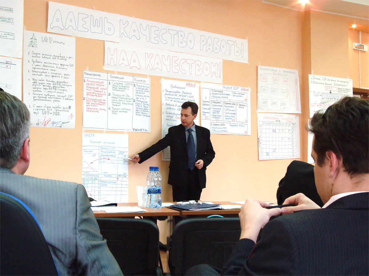 - Выездной двухдневный семинар-тренинг "в режиме погружения". Основные блоки: Инструменты бережливого производства. Анализ проблем. Постановка целей. Принятие решений. Управление изменениями.