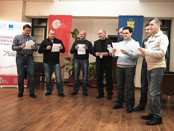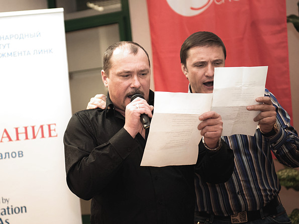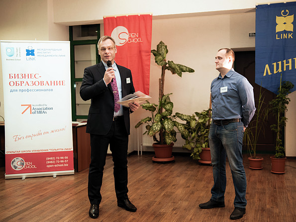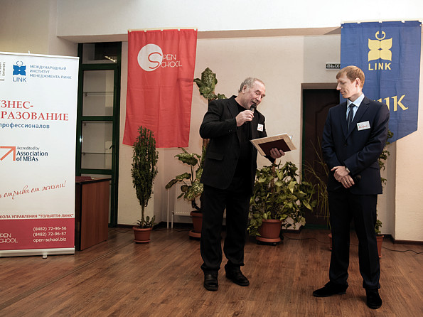 После, студенты и выпускники, учившиеся по программам OU Business School и МИМ ЛИНК в прошлом десятилетии (а некоторые - в прошлом тысячелетии) представили сообществу своих "младших" коллег и вручили им заслуженные документы. А суровый мужской клуб под чутким руководством Андрея Самойлова исполнил свой не менее суровый гимн "О-у-о! Теперь мы в бизне-се!" о пользе бизнес-образования, конечно