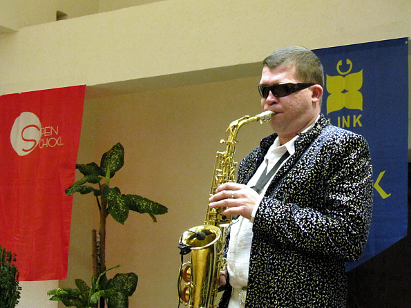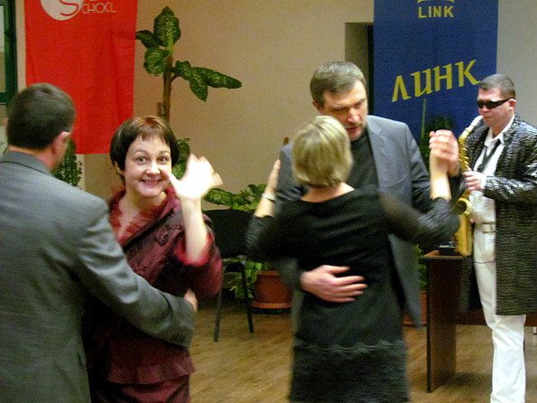 А далее поздравление Татьян, общение и танцы под аккомпанемент саксофониста джазового оркестра Алексея Дмитрова и лауреата международных джазовых конкурсов гитариста Виктора Мельникова.